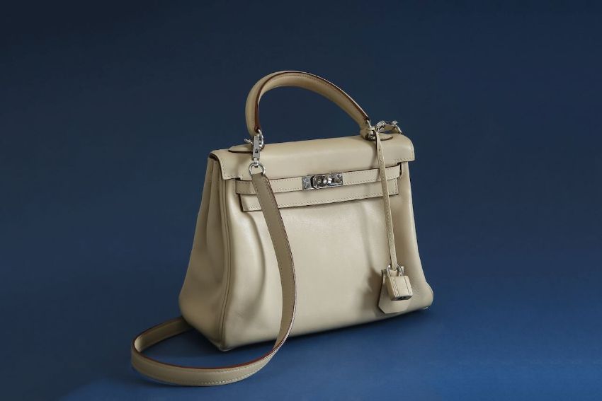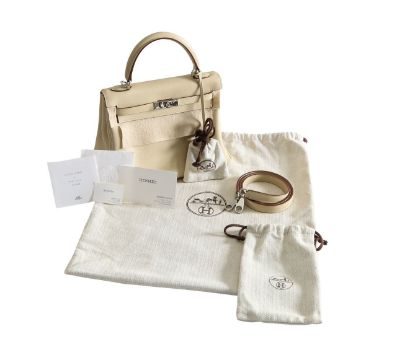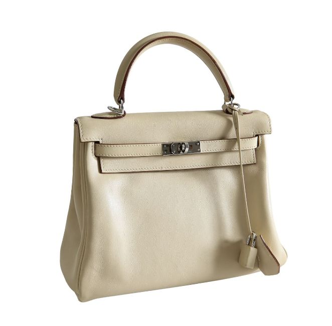 An Hermès Retourné Kelly 25 in Craie Swift leather