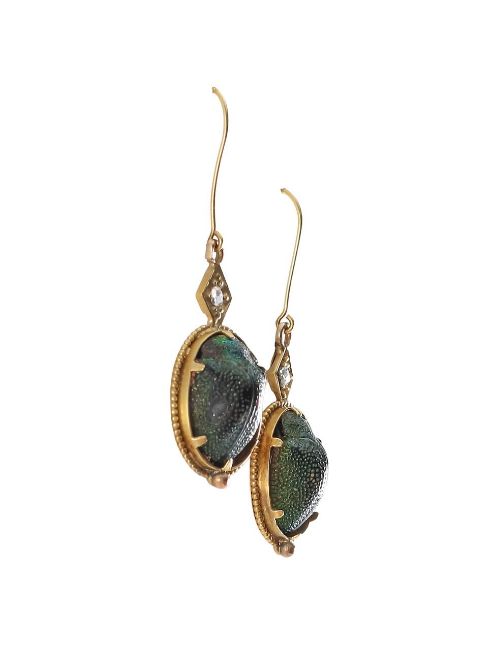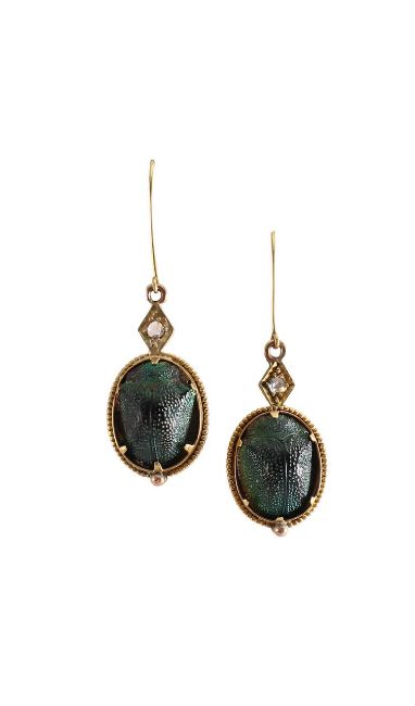 A pair of diamond and scarab beetle ear drops