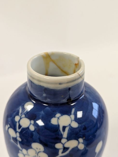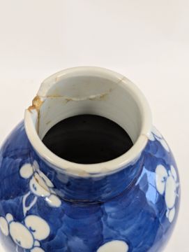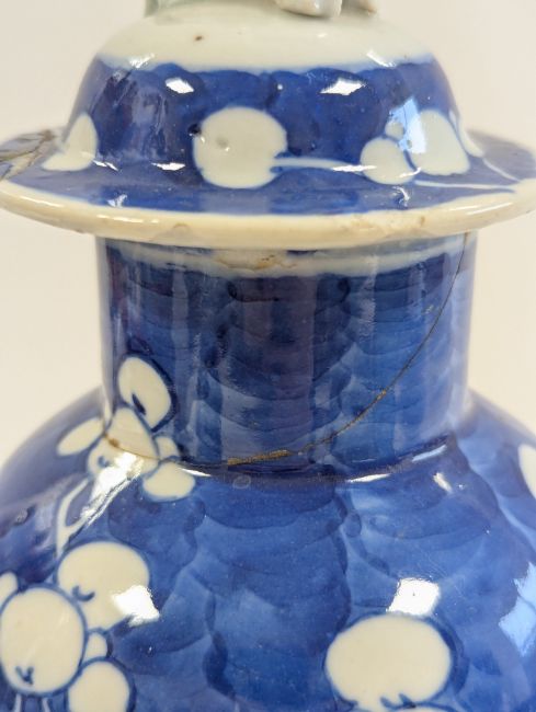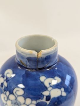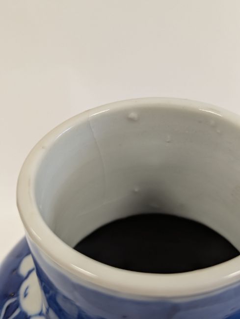 Condition: The two pairs of vases are all with chips, cracks and restoration around the rim and covers. The ginger jar does not have any chips or cracks.