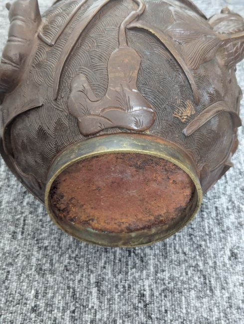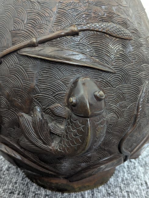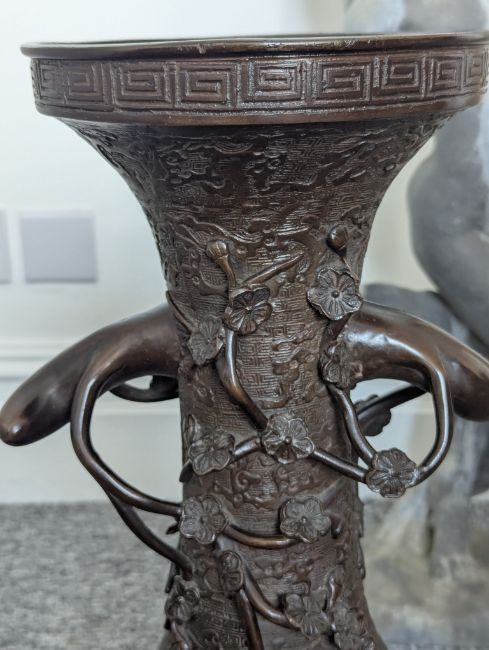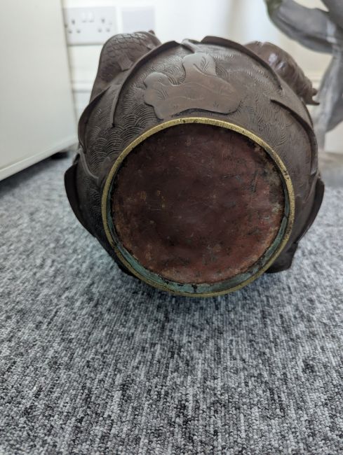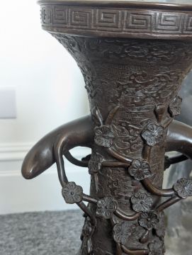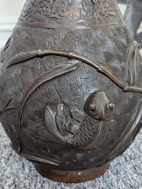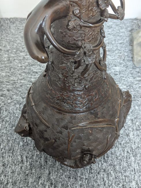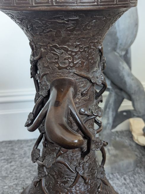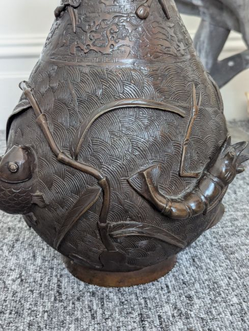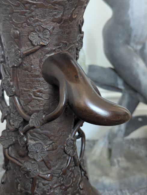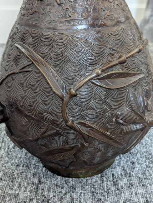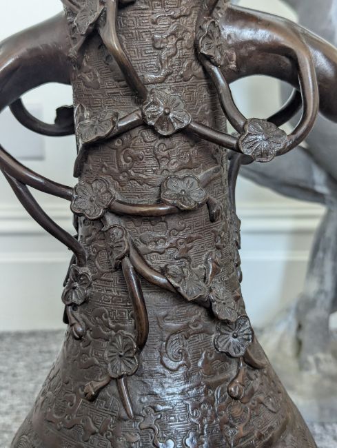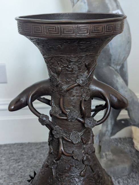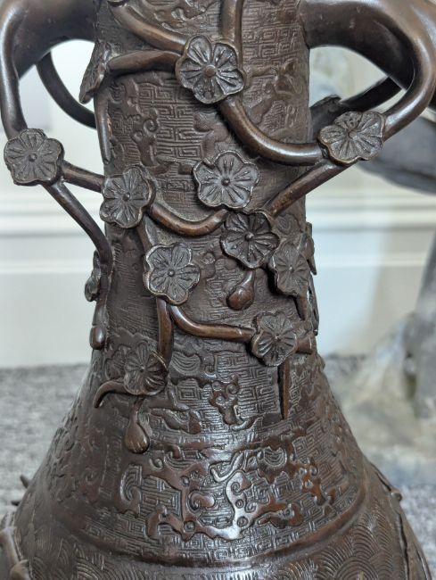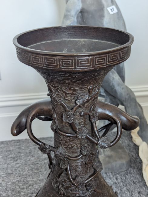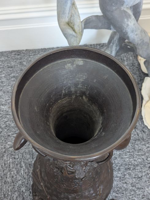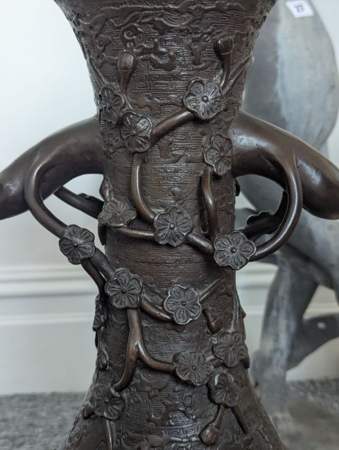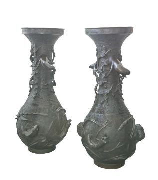 A pair of large Japanese bronze vases,