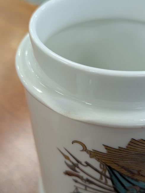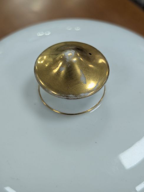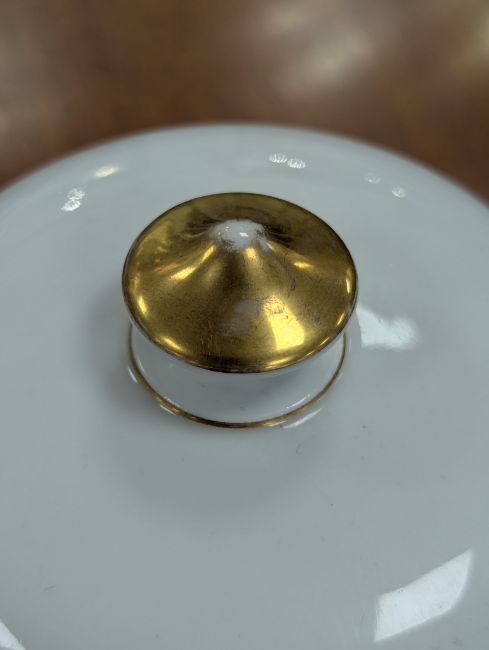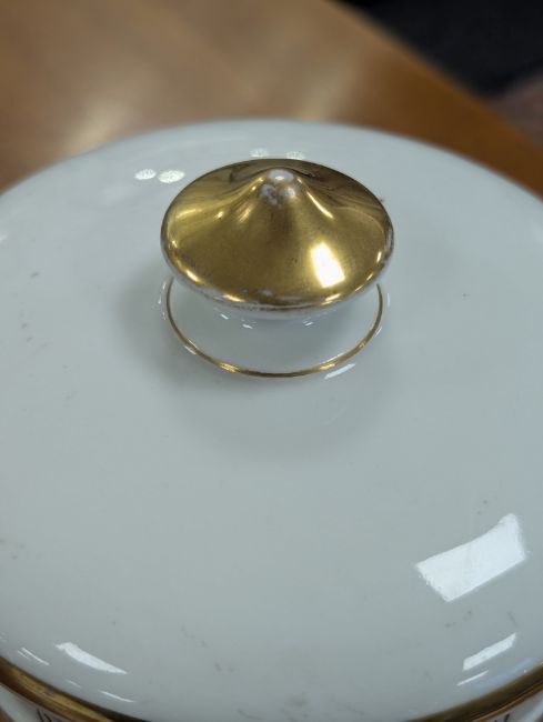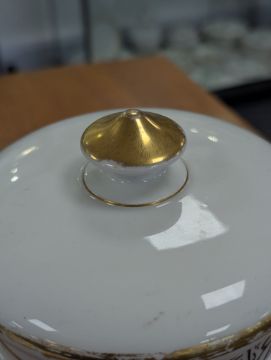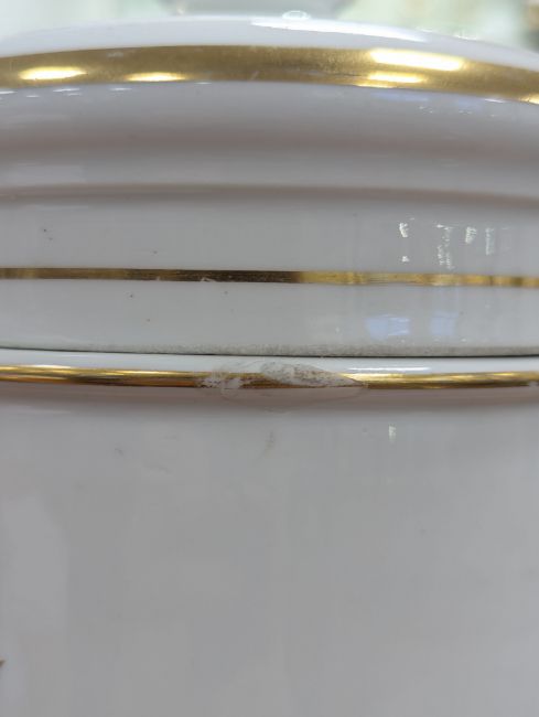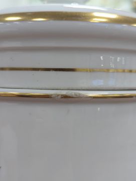 Condition: One with a restored chip. Another with a large chip. The remainder in good condition, with only wear to the gilding and decoration.