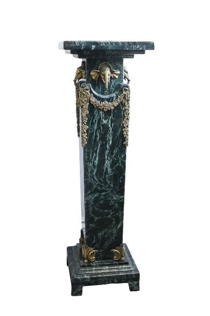 20th century, the graduated stepped top leading to a tapering column, with swag and elephant head ormolu mounts, raised on a stepped base