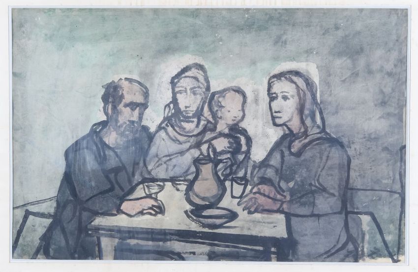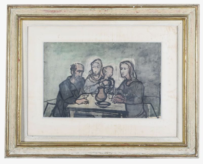 Ink and wash, backed on board, signed to lower right, inscriptions to reverse, label verso, framed, glazed and mounted