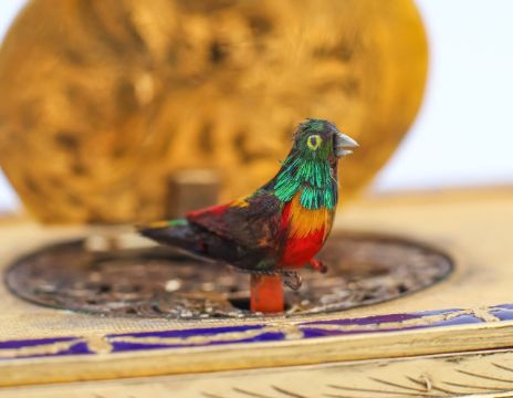 Condition: The bird holds a tune and flaps its wings, but struggles to rotate. Slightly rocks on a flat surface. No damage to the enamel. The glazing is a little loose to the compartment lid.