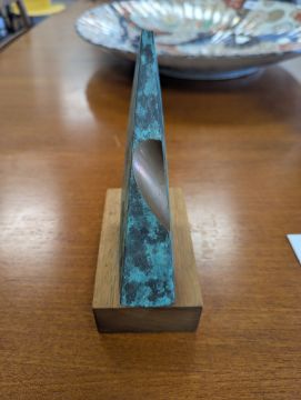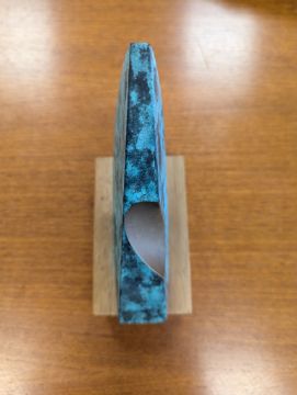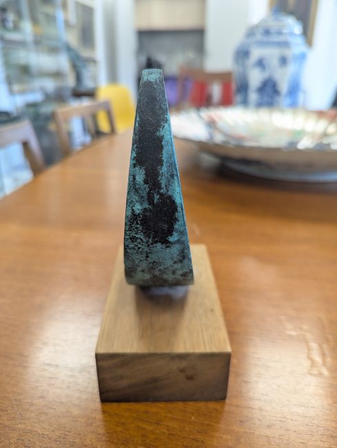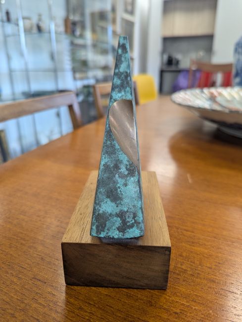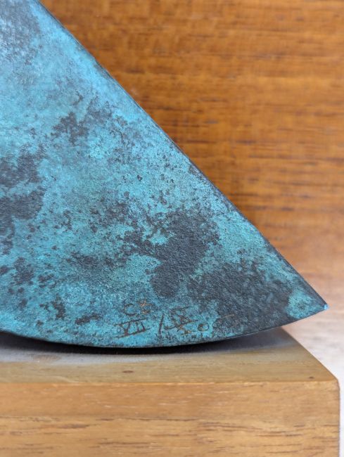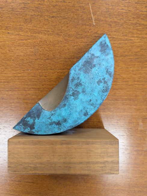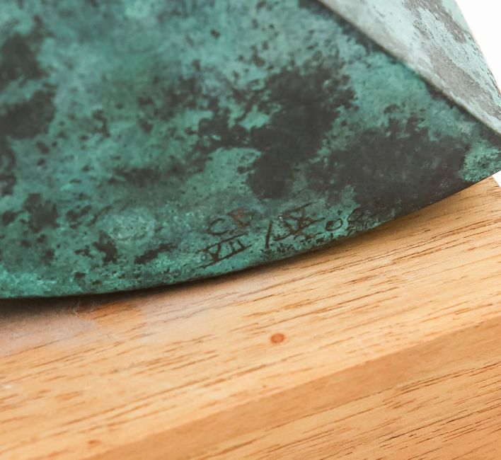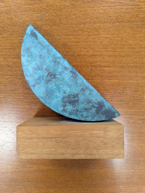 an abstract patinated bronze in the form of a crescent moon, heightened in gilt, raised on a wood base, signed C.B, numbered VII / IX, dated 2003, with its original receipt and paperwork