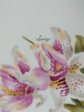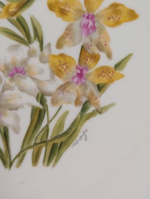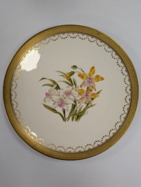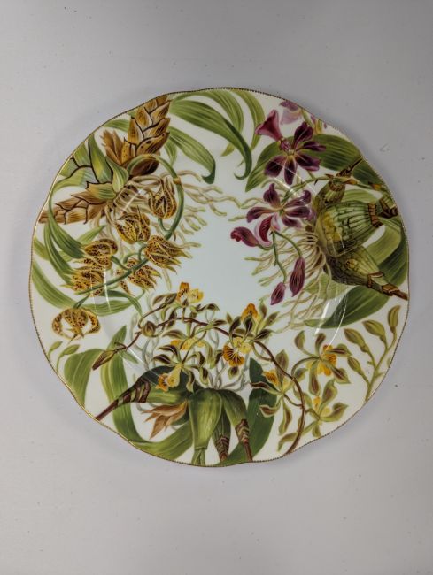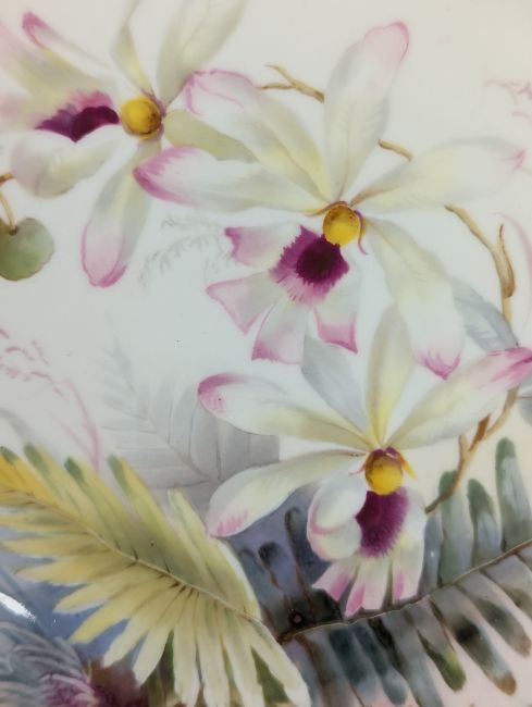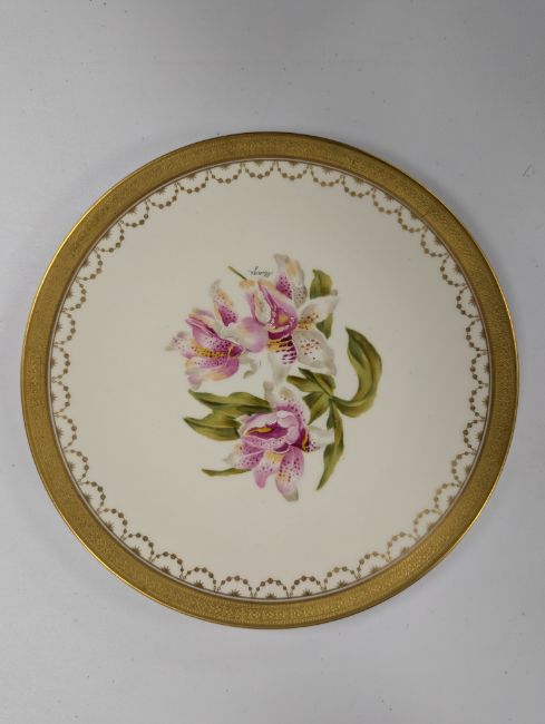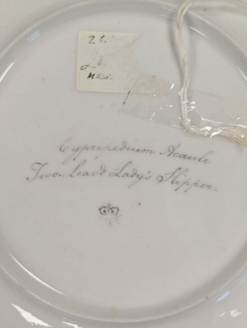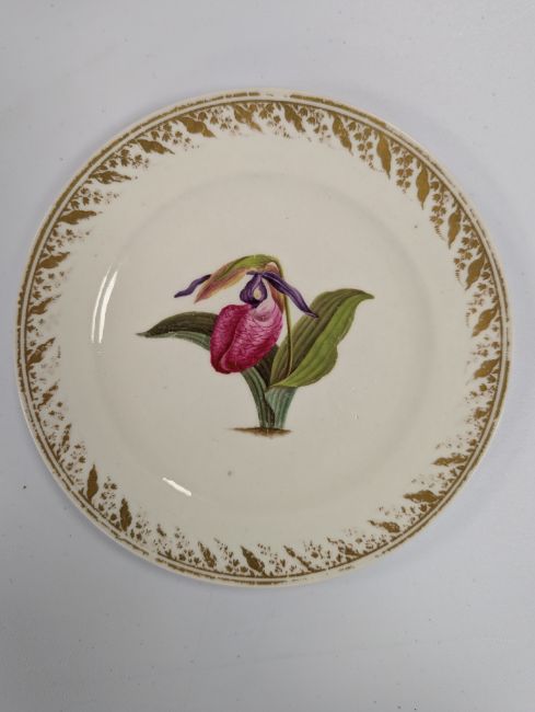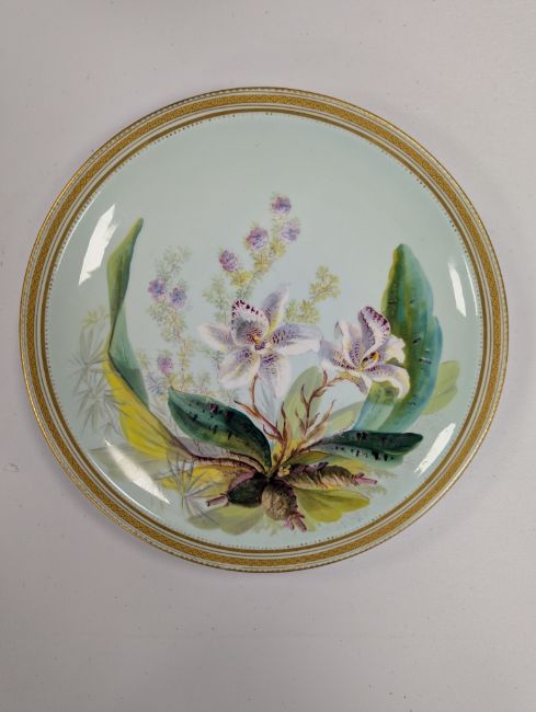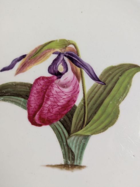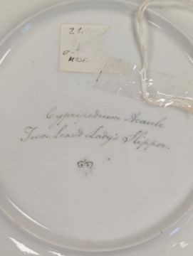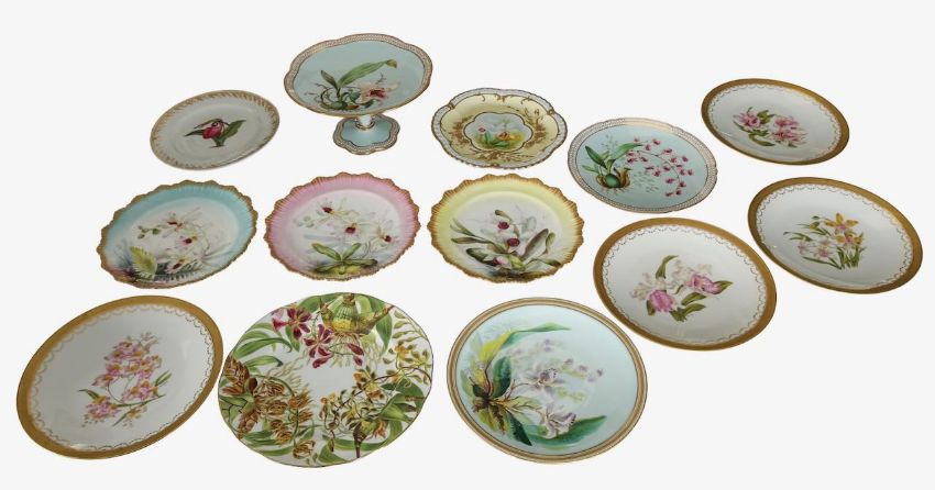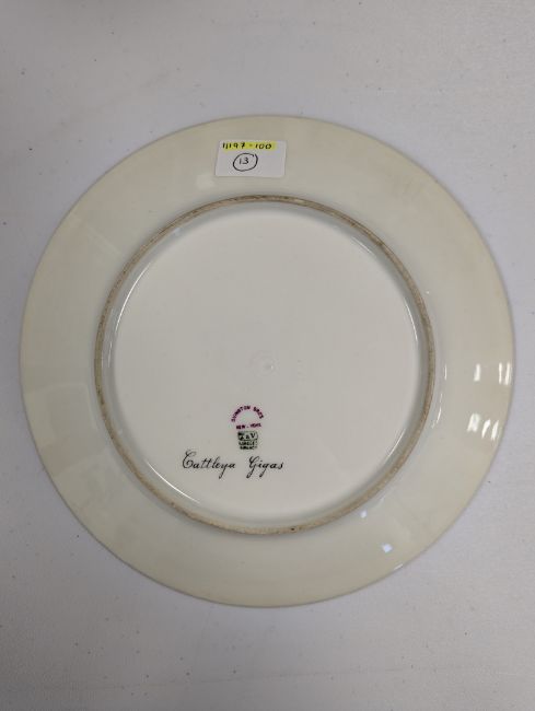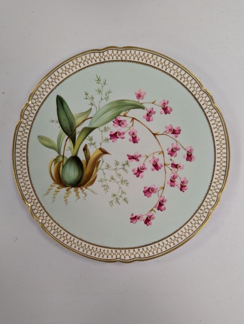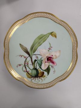19th to 20th century, comprising a Royal Crown Derby example, c.1820, depicting a 'two leaved lady's slipper', a later Derby example, c.1890, depicting an orchid, four by Ovington Bros, three by Crescent China, one Copeland Spode, another depicting various flowers and bulbs, and a comport with a diamond registration mark (13)