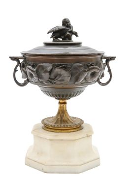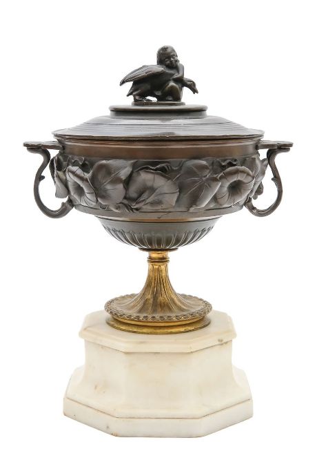 A Grand Tour bronze urn and cover,