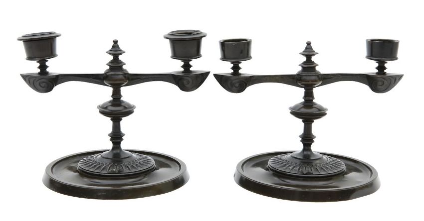A pair of 19th century bronze candlesticks,