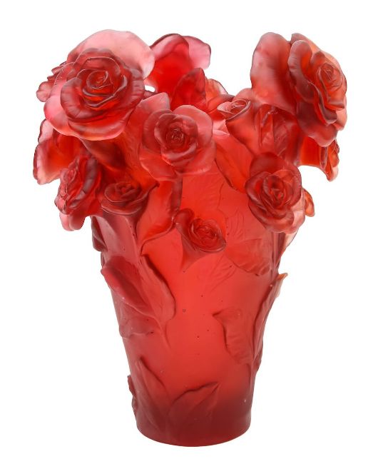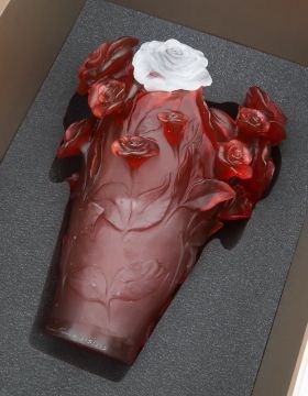 A large Daum 'Rose Passion' pate de verre glass vase,
