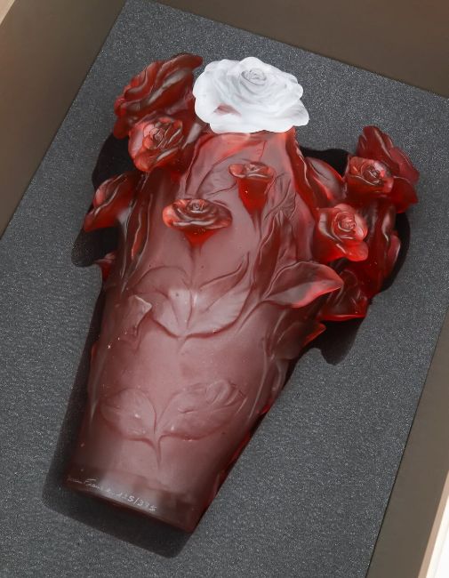 of recent manufacture, from the Floral Universe collection, in red and white, 'Rouge et Fleur Blanche', limited edition no.125/375, etched signature 'Daum France', with its original box and paperwork