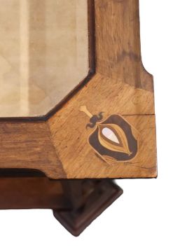 late 19th to early 20th century, in the manner of Liberty, the rectangular top with bevelled glass, inlaid with mother of pearl stylised foliate motifs and marquetry