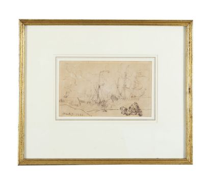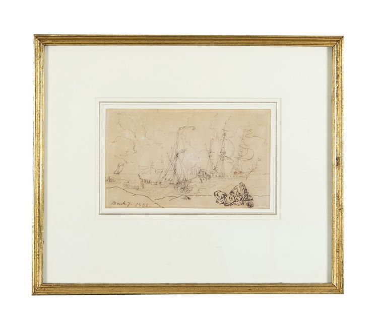 pencil, pen and brown ink on paper, signed & dated '1844' to lower left, Spink gallery label verso, framed, glazed and mounted.