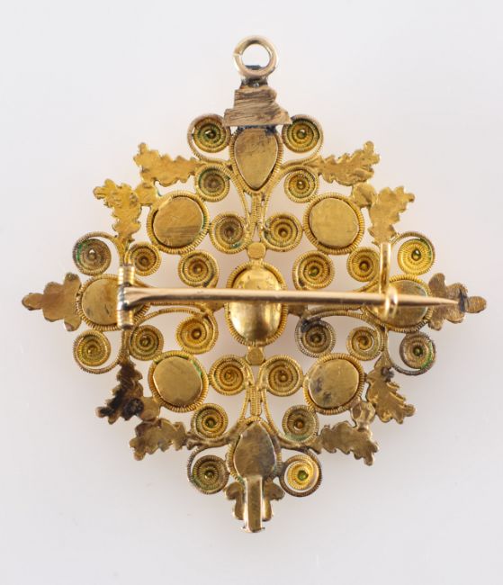 A Georgian Cannetille gem set brooch