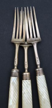 A set of George II silver mother of pearl knives and forks,