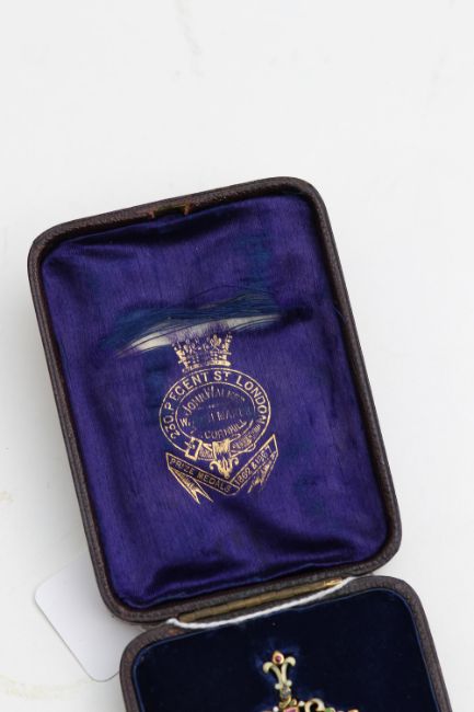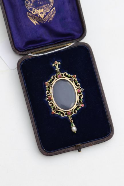 A Child & Child enamel, pearl and gem set pendant