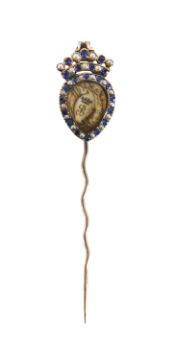 A Victorian sapphire and seed pearl stick pin