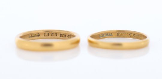 Two 22ct gold wedding bands (2)