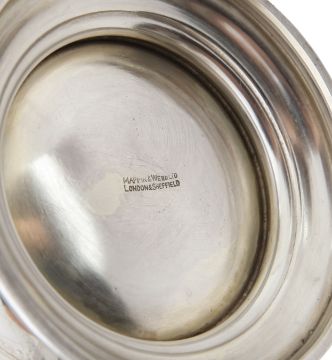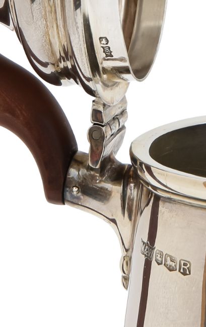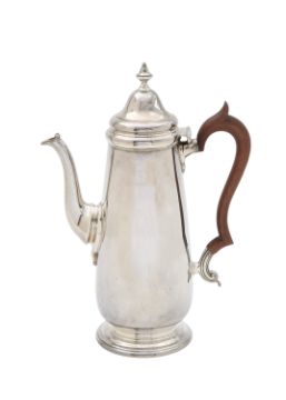 by Mappin & Webb, Sheffield 1959, the hinged lid of domed form, with an urn finial, leading to a tapering cylindrical body, raised on a spreading circular base