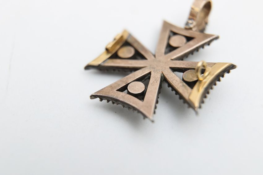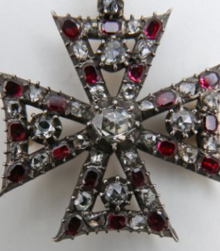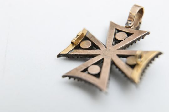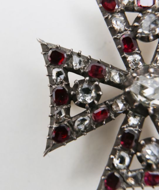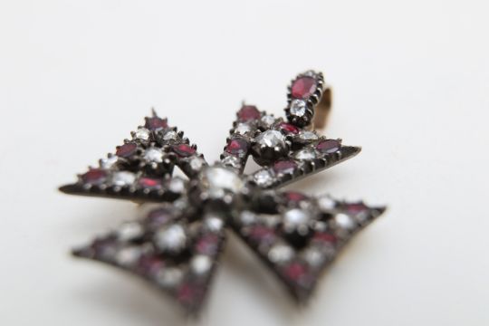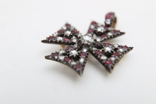 A Georgian garnet and diamond Maltese cross pendant