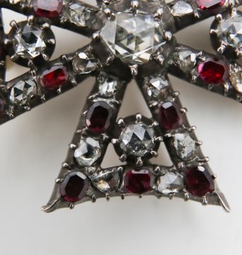 Condition: With commensurate to age, overall good condition, surface wear to garnets and a couple of diamonds with damage and a damaged garnet
