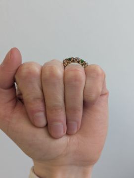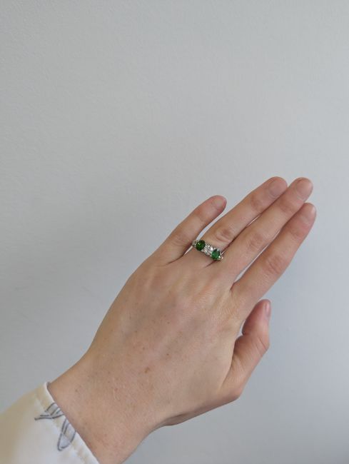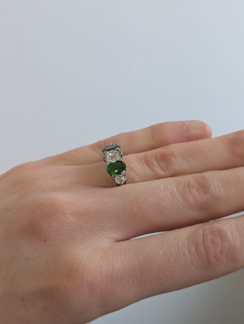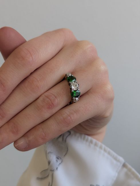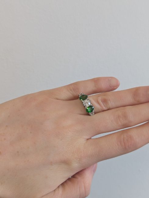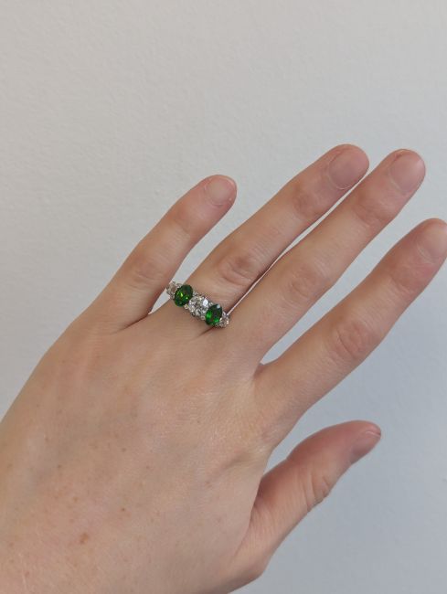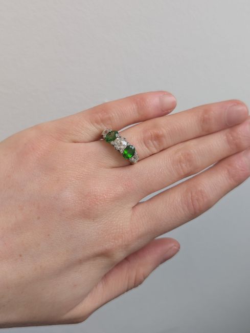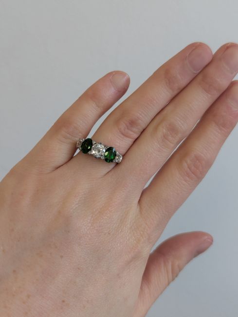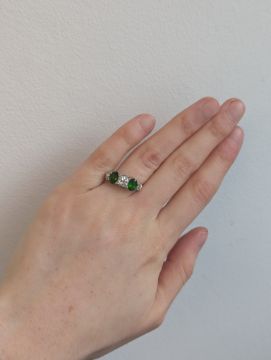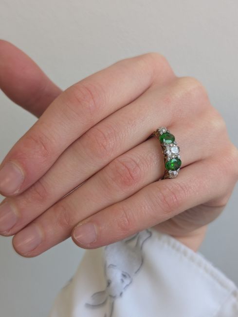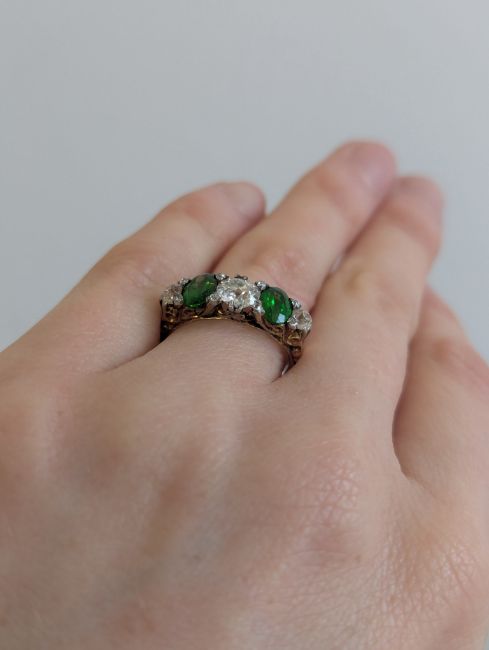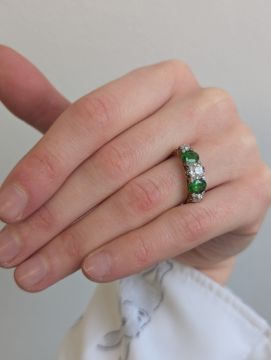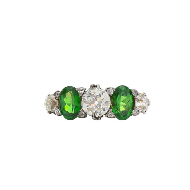 A demantoid garnet and diamond five stone ring