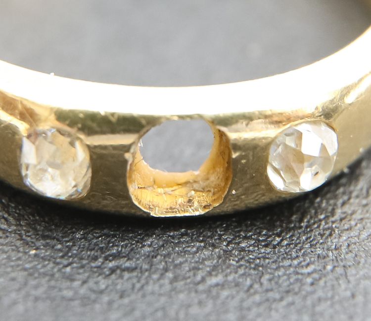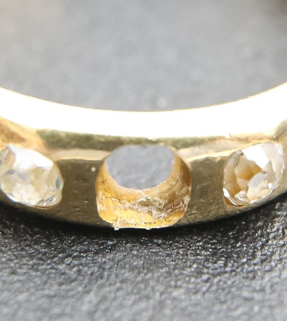 Condition: With wear commensurate to age, missing centre stone approx. size 3.2x3.4mm, bright high table good match