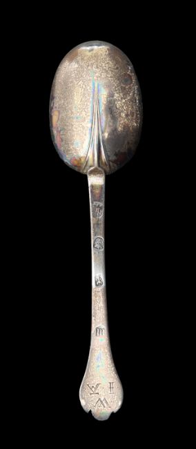 Condition: The maker's mark is rubbed and illegible. Heavily tarnished. Dents to the bowl commensurate with age.