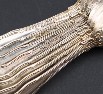 the eight King's Husk pattern teaspoons, by Robert Wallis, London 1838, a cased Christening fork and spoon, by Thomas Bradbury, Sheffield 1911, with a Celtic knot pattern, and a carving knife, Sheffield 1897 (11)