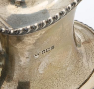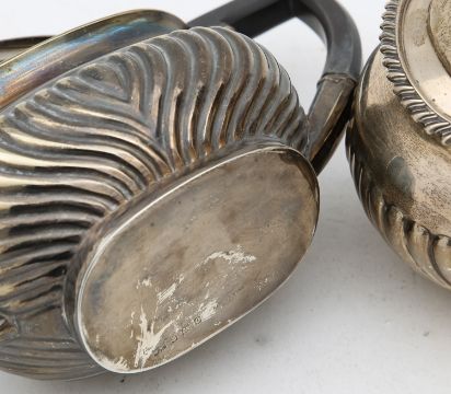 the teapot, Sheffield 1925, with a gadrooned border, and a similar hot water jug, Birmingham 1938 (2)