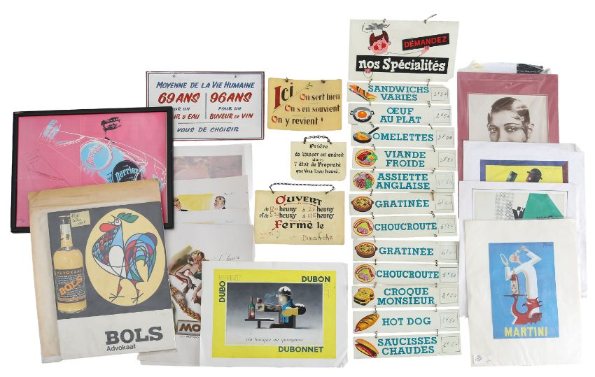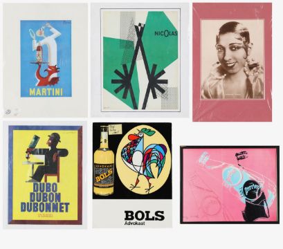 including a Bols cardboard sign. a framed cardboard Perrier sign; various printed adverts including Nicholas and Martini; together with a framed photographic image of Josephine Baker etc. (qty)