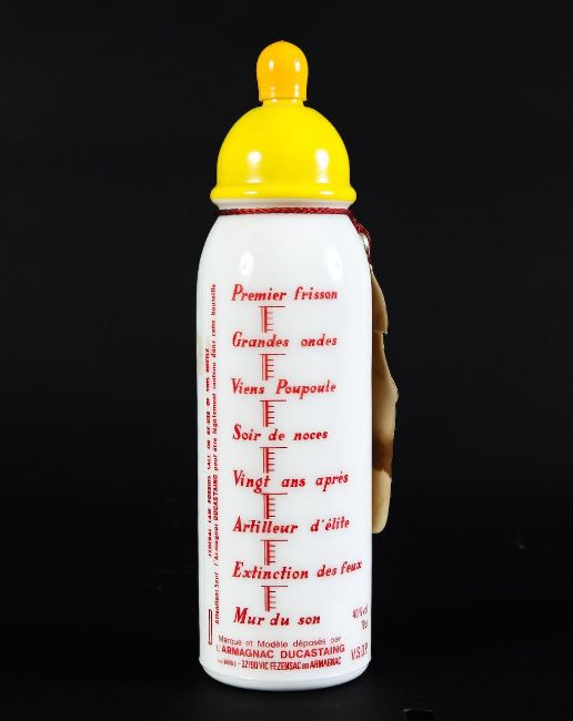 A French Armagnac glass decanter in the form of a baby's bottle, mid 20th century,