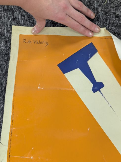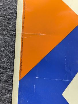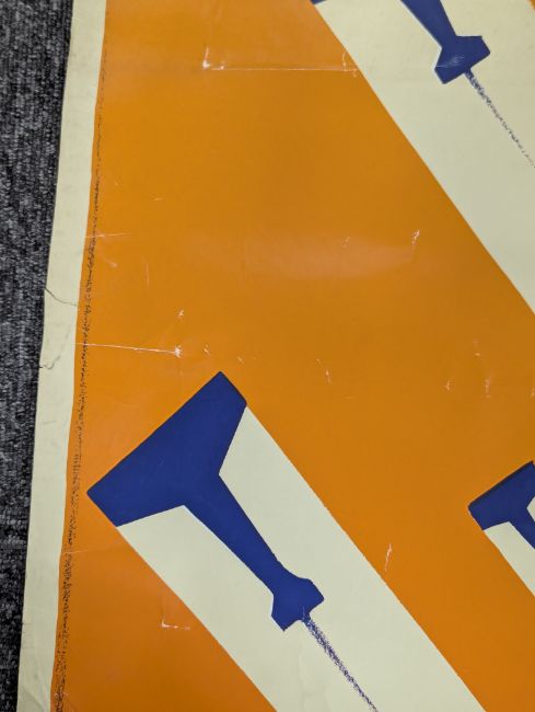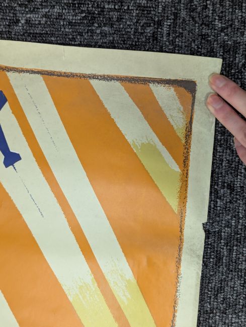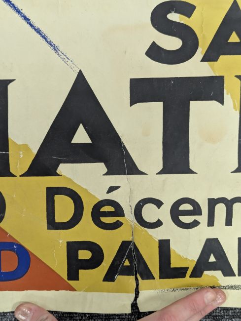 Condition: tear running up from bottom for approx 15cm, some water/damp damage visible on reverse to lower section, various folds, creases, minor stains, wear commensurate with age.