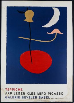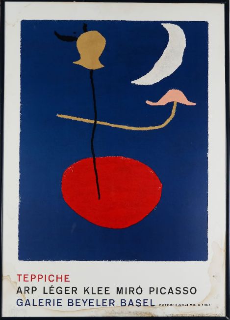 Original exhibition poster for an exhibition at the Galaerie Beyeler in Basel, Switzerland, 1961, featuring the works of artists such as Arp, Léger, Klee, and Picasso.