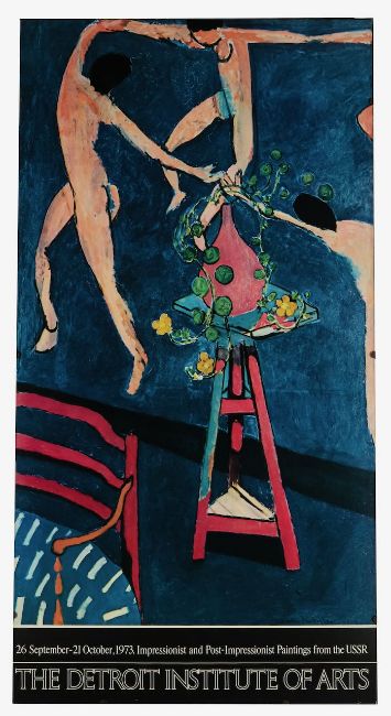 A reprint exhibition poster for Impressionist and Post-Impressionist Paintings from the USSR, held at The Detroit Institute of Arts, from September 26th - October 21st 1973, on card.