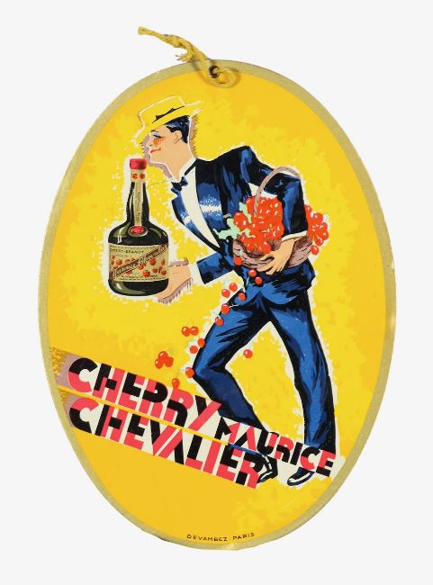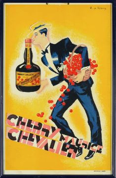 Two cherry brandy liqueur advertisements with Maurice Chevalier, designed by Roger de Valerio, with two others.
