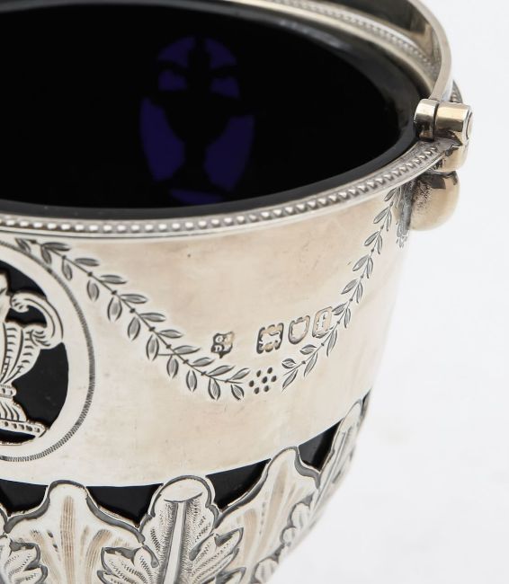 by Josiah Williams & Co., London 1901, with a swing-handled, beaded border, and Classical style decoration depicting pierced urns, and engraved swags, raised on an acanthus leaf pedestal base