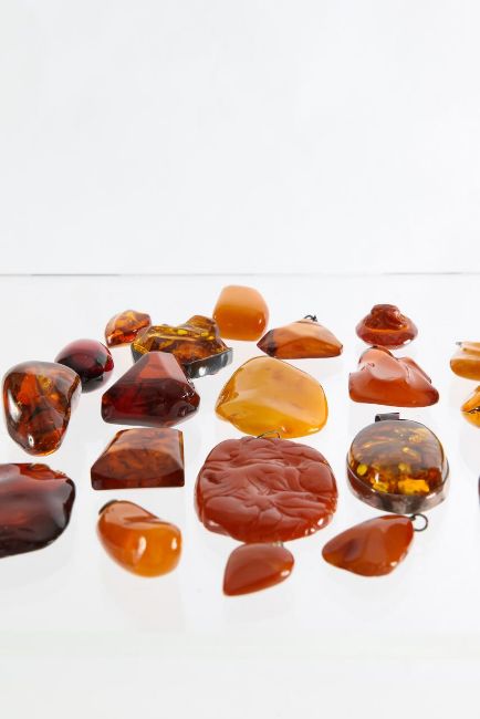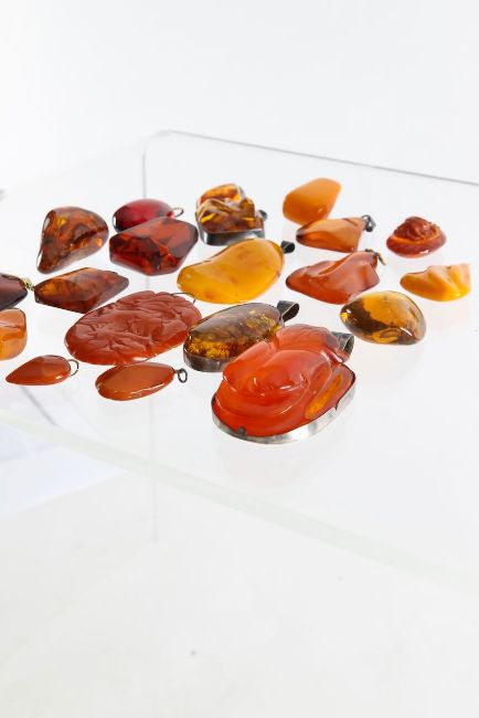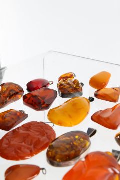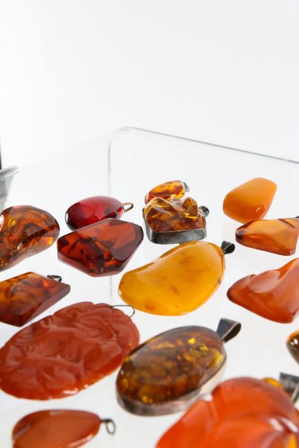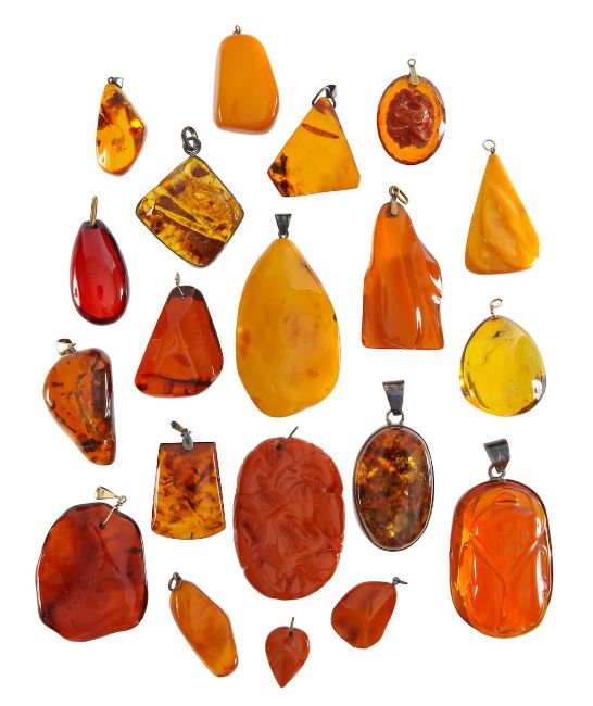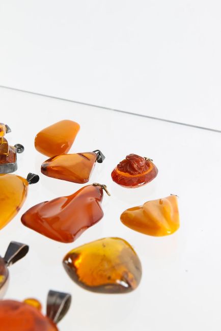 A large collection of amber pendants