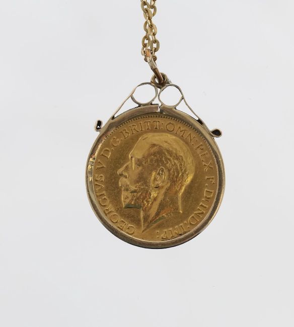 A George V 1912 full Sovereign in a 9ct pendant mount and chain