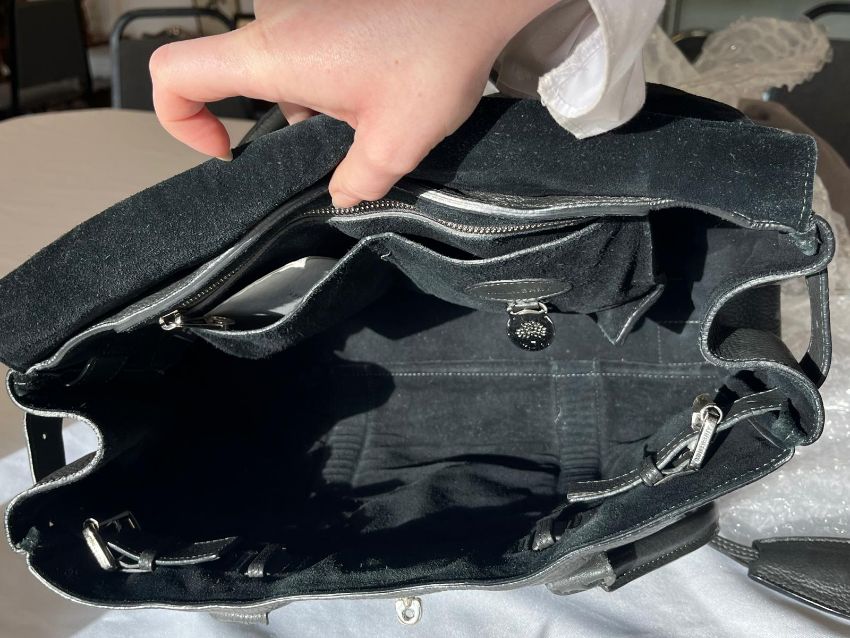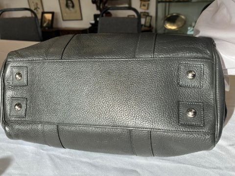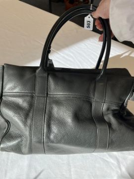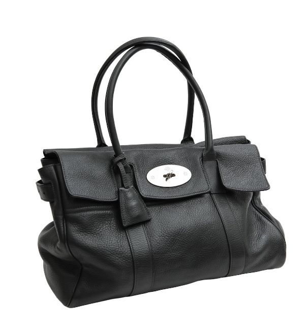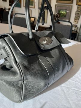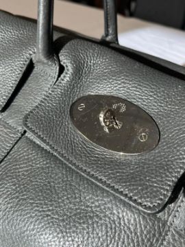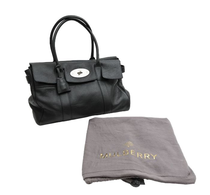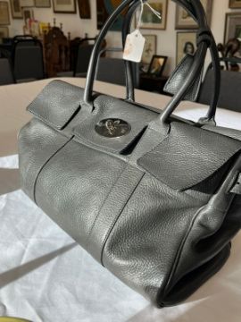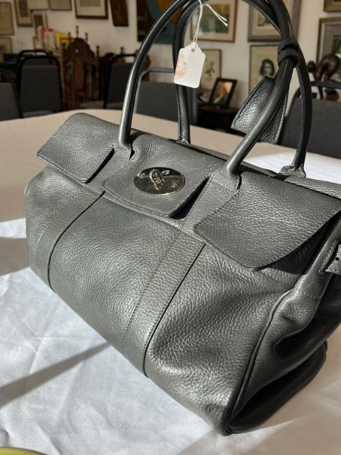 A Mulberry 'Bayswater' Charcoal Grey Oak Leather Handbagwith rolled handles, silver tone hardware and postman's lock, the interior revealing a zipped pocket and two additional pockets, adjustable belted sides and pendant baring serial no. 2099161, dustbag included.Dimensions: 35cm x 26.5cm x 16.5cmCondition: Exterior shows minor scratches to silver hardware and wear to base corner piping . Interior has signs of minimal use.