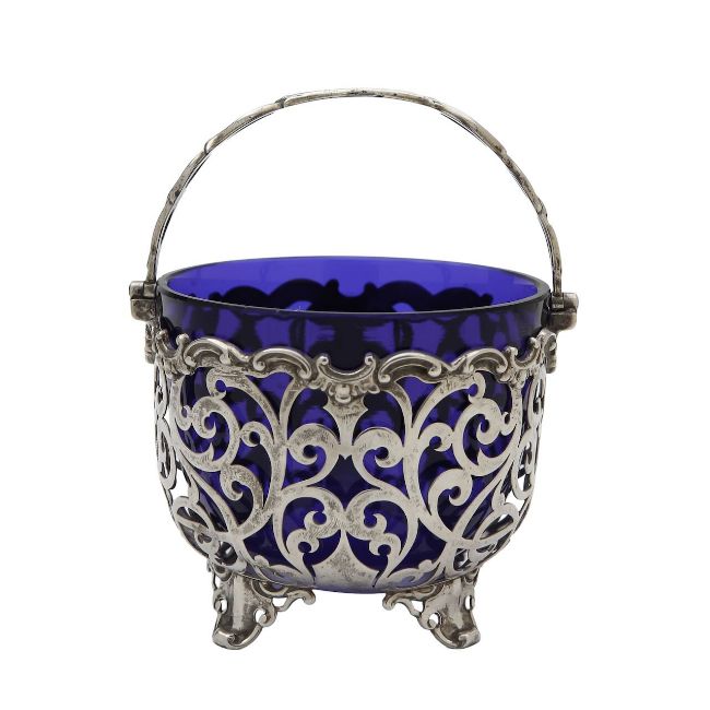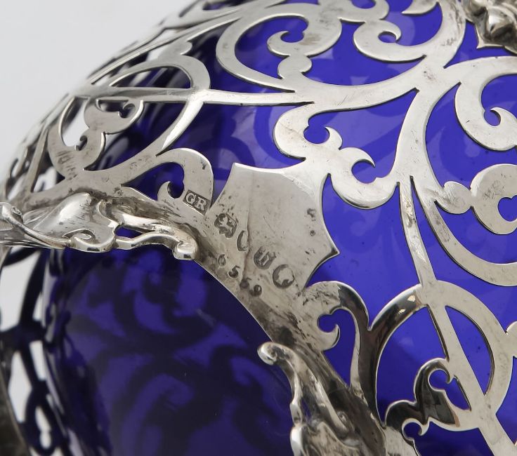 by George Richards, London 1857, with pierced foliate decoration, and a blue glass liner