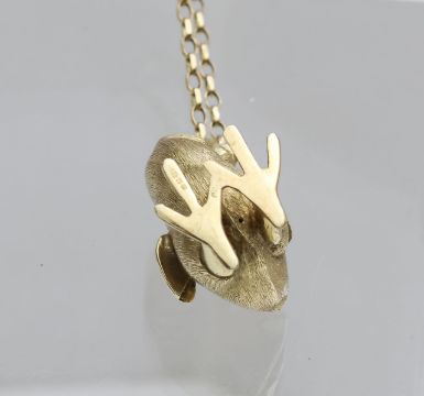 with 9ct hallmark, suspended from a 9ct hallmarked belcher chain