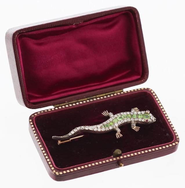 A late 19th century demantoid garnet and diamond lizard brooch