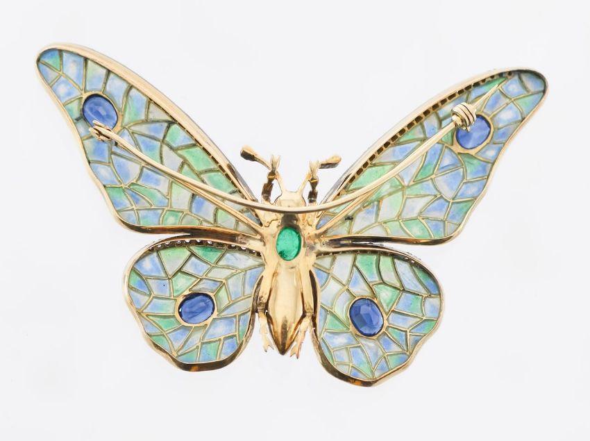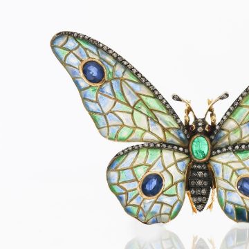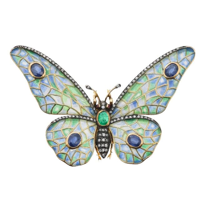 A plique-a-jour enamel and gem-set butterfly brooch