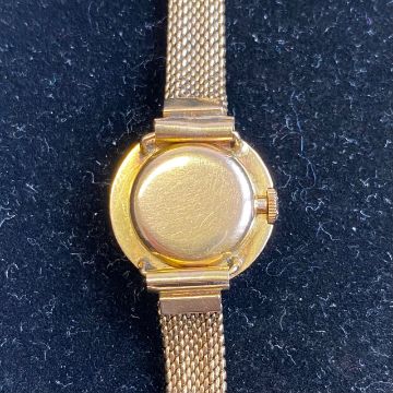 the round champagne dial with baton numerals, on a mesh bracelet, marked on the catch 750