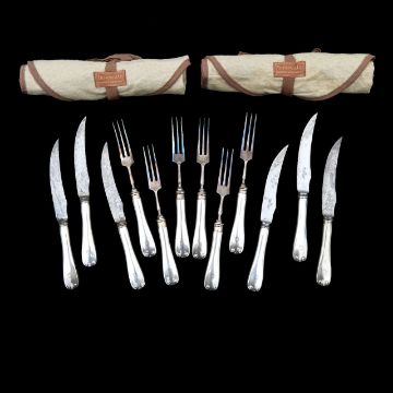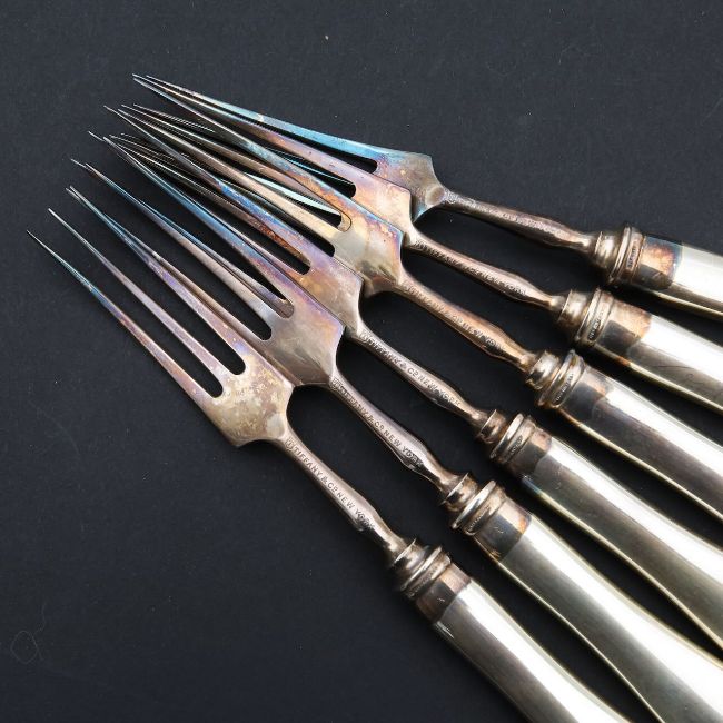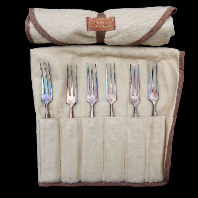 A set of Tiffany silver 'Flemish' pattern knives and forks,