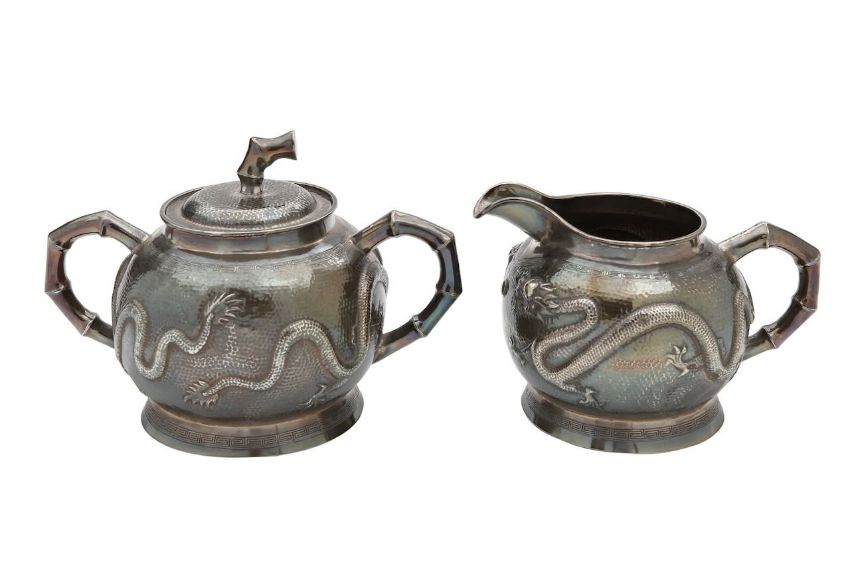 Condition: Tarnished throughout. The cream jug has a dented base.