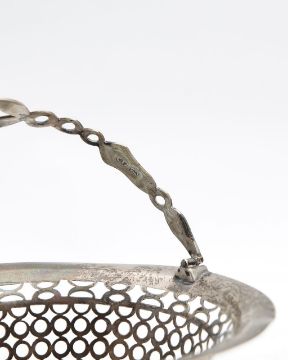 the Victorian pierced pedestal example, by Matthew John Jessop, Birmingham 1899, with a swing-handle, the George V example, by Charles Boyton & Son Ltd, London 1913, with a pie crust rim and base (2)