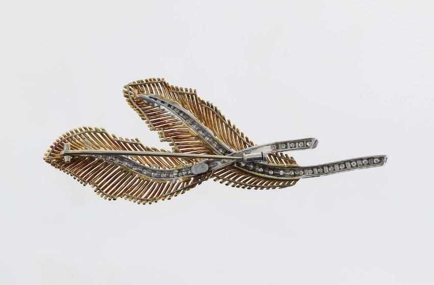 A stylish Italian design diamond feather brooch