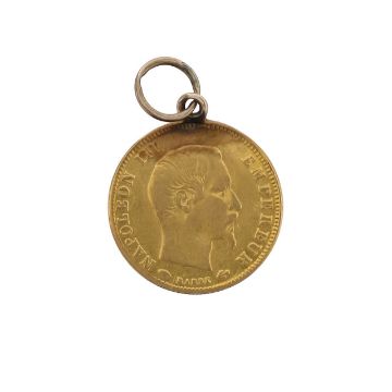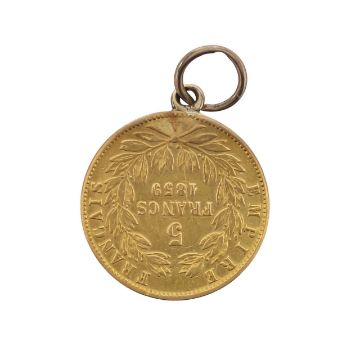 A French Napoleon III 1859 five francs coin with soldered pendant loop