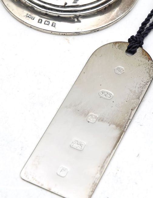 comprising two silver capstan inkwells, Birmingham 1910, a cased letter opener, Sheffield 2004, a bookmark, London 2016, and a silver covered book of Tennyson's Poetical Works (5)